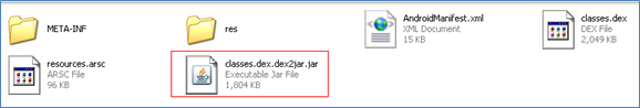 So, we need to convert it back to some human eye friendly language. We will use a tool called dex2jar which can be used to convert .dex to JAR files (http://code.google.com/p/dex2jar/ ).