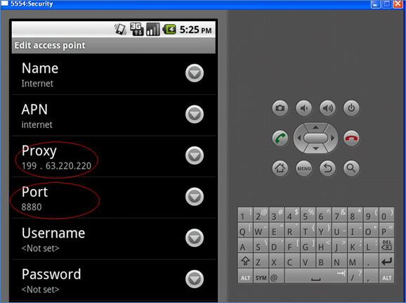 We need to set up local web proxies (e.g. Burp, Paros) to intercept the traffic by modifying the Internet setting in Android by clicking on Settings->Wireless & Network Settings-> Mobile Networks -> Access Point Names-> Internet-> Proxy Name (PC's IP address) & Port [Fig-5]. The same settings we need to specify in Burp as well: provide the host IP and port no. as above. Now the proxy should be up and running and successfully captures any request [Fig-6].