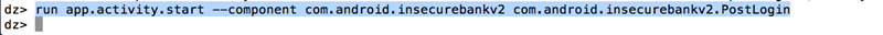 Now, let's do the same thing we did in the last article, call an exported activity in the insecure bank application. For that, we will use the module app.activity.start.