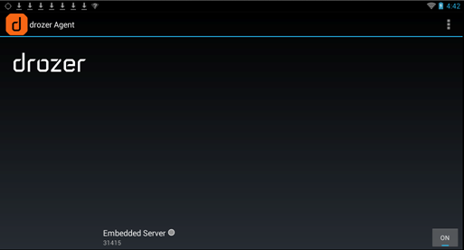 Once drozer has been installed on your system, install the agent.apk on your device/emulator.