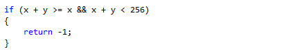 At first glance, the code above looking simple, it checks the incoming data is no larger than the destination buffer, adding two integers together. Imagine that the first variable is 0x98 and the second variable is 0xEEEEEEEC, and then output is bizarre as following;