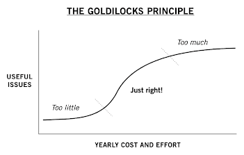 To find the right balance, consider Goldilocks: she goes for a walk in the woods and comes upon a house. In the house, she finds three bowls of porridge. The first is too hot, the second is too cold, but the third is just right.