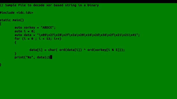 The following script will demonstrate the use of built-in functions to decrypt a simple xor routine, and print out the results.