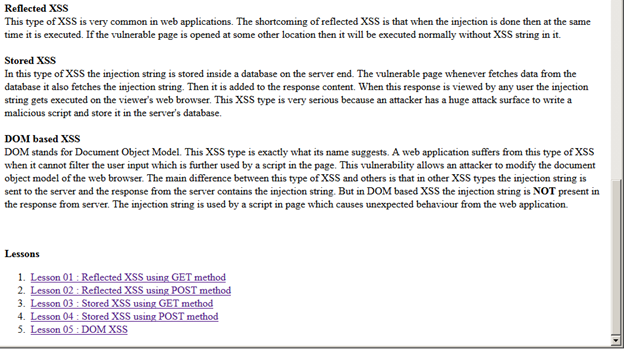 XSS Vulnerability description and lessons: