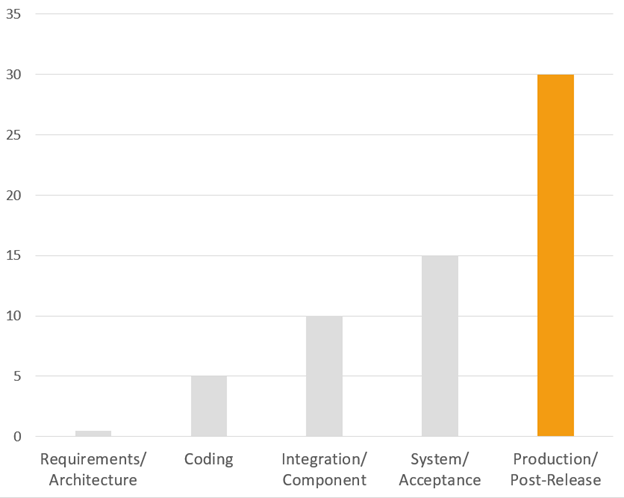 Percentage of Vulnerability Cost in Stages of SDLC (Source: National Institute of Standards & Technology)