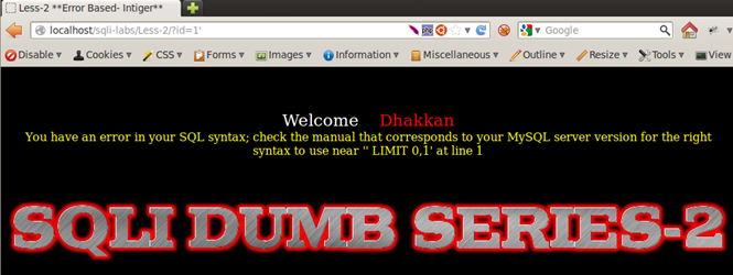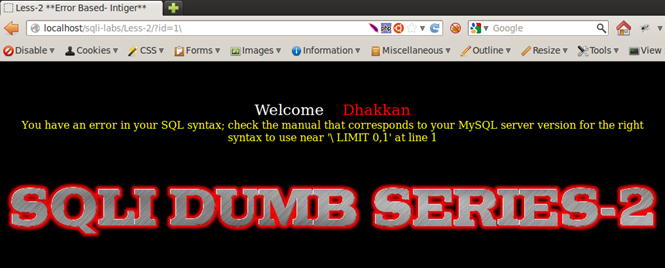 Our input is same but the output has a minor change to the Less-1, near ' '1 LIMIT 0,1' at line 1. After our input 1 there are no quotes, again proving that Less-2 is an integer-based injection and does not need any quotes to break the query.