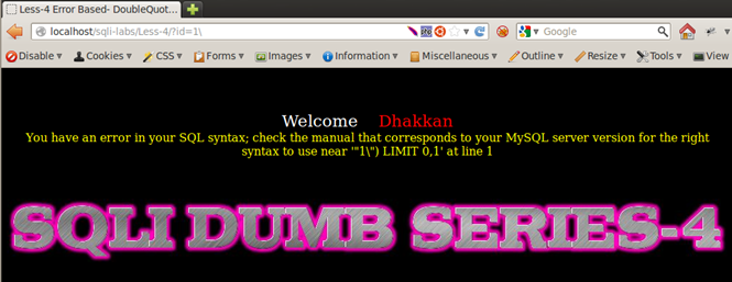http://localhost/sqli-labs/Less-4/?id=1'