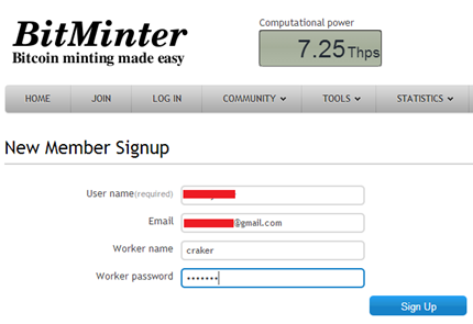 I will show you how to join this pool server. Follow the link https://bitminter.com and sign up for account.