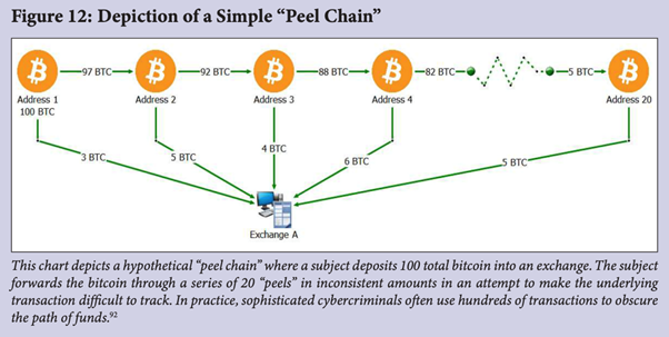 The existence of “mixers” is acknowledged. These entities add a layer of obfuscation to a crypto transaction. Again, this could be part of a criminal event. The section looks at a variety of use cases that use different mechanisms to facilitate continued transaction obfuscation.