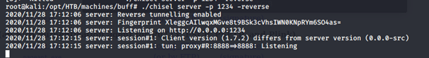 - On the attacking machine, we run chisel in server mode to accept connect, which can be seen below:
