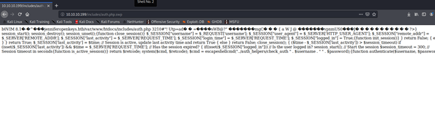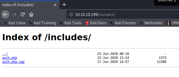 - Enumerating the “includes” directory, we see two files: auth.php and auth.php.swp.