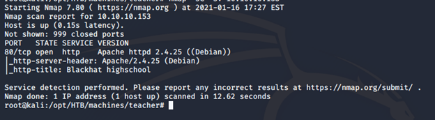 <<nmap -sC -sV -oA Teacher 10.10.10.153>>