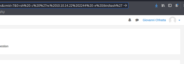 - Note the above cmd added to the URL, which spawned the reverse shell
