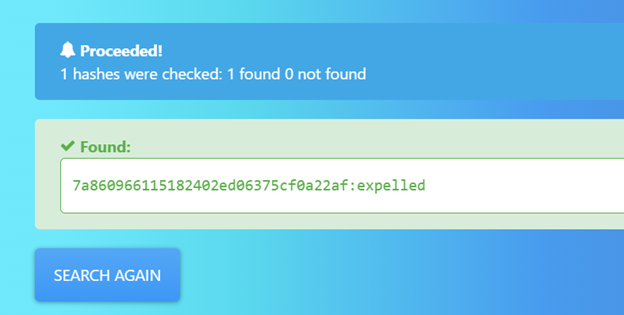 - Password was then cracked using an online portal