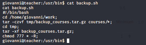 - After enumeration, you will find a backup.sh file. Contents are below