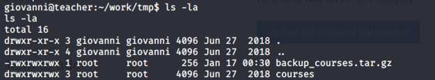 - Below, ownership of files can be seen