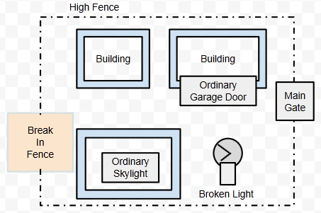 5. (hotspot): The following plant has several security weaknesses. If you were in charge of physical security, which one would you fix or upgrade first?