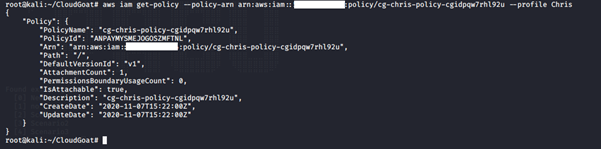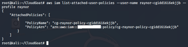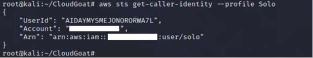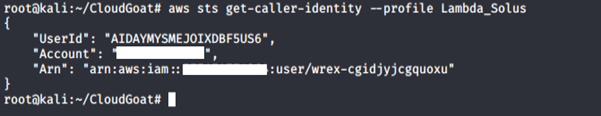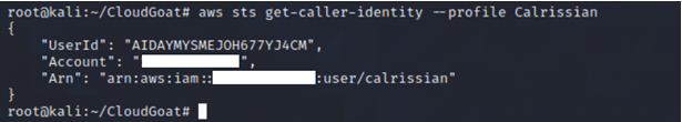 This command returns your account ID, user ID and ARN, confirming successful authentication. This verification step is crucial before proceeding with CloudGoat configuration.