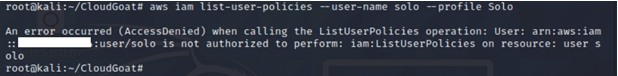 Perform reconnaissance on IAM user Solo to see what privileges the IAM user has by enumerating the policies and permissions attached to the IAM user.