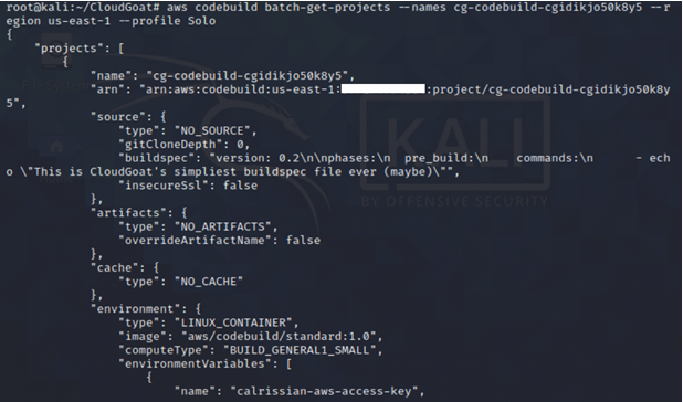 Since we are unable to get more information about IAM user Solo, we need to perform recon on any existing AWS CodeBuild project that IAM user Solo has access to.