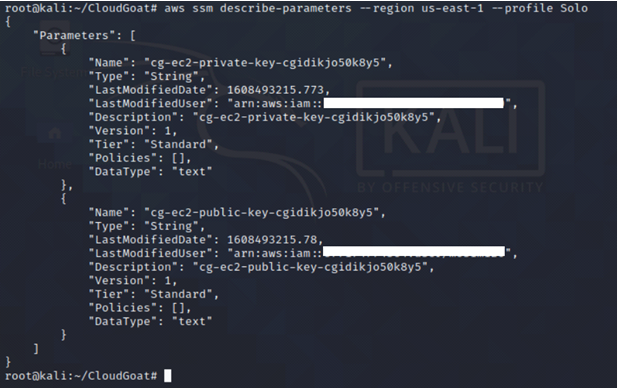 We also find some sensitive information (EC2 SSH keys) stored on the AWS SSM parameter store.