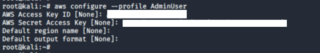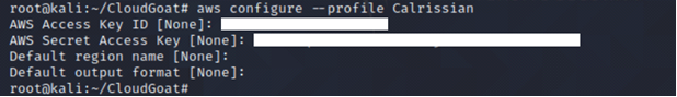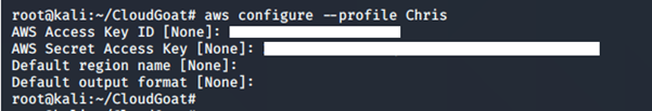 With your credentials ready, configure the AWS CLI to manage your CloudGoat environment. The AWS CLI enables CloudGoat and Terraform to interact with your AWS account programmatically.