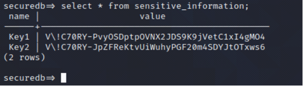 Goal: Gain access to sensitive information (a pair of secret strings) stored in the RDS database instance.