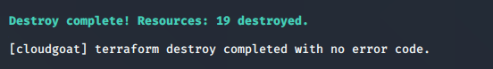 Important: CloudGoat can only manage resources it creates through Terraform. If you manually create additional AWS resources during your testing, remove them manually before running the CloudGoat destroy command to ensure complete cleanup.