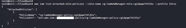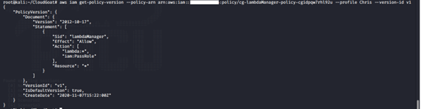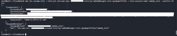 The user was granted the sts:AssumeRole which allowed the IAM user Chris to assume a role (cg-lambdaManager-role-cgidpqw7rhl92u). The IAM role itself also had iam:PassRole, which allowed it to assume another higher-privileged role (cg-debug-role-cgidpqw7rhl92u) via the Lambda function.