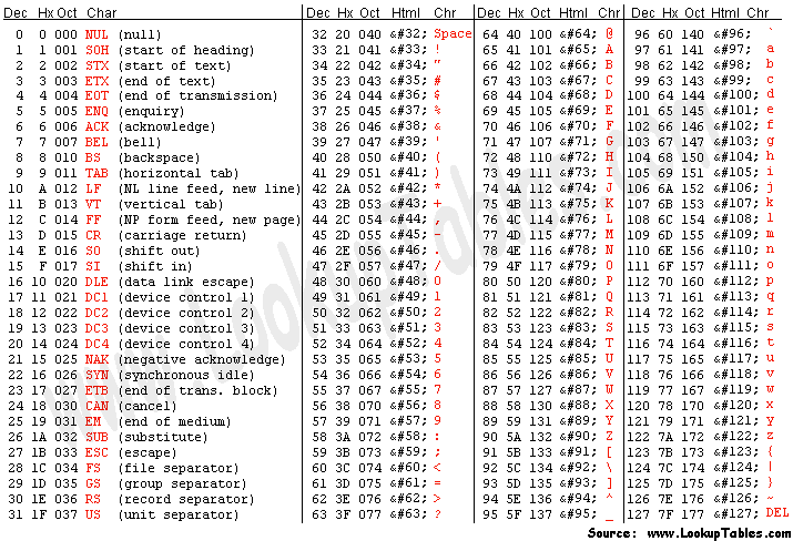 The image above shows a table of ASCII characters. A fully textual message would likely mainly consist of letters (0x42-0x5A and 0x97-0x7A).