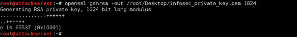 openssl genrsa -out /root/Desktop/infosec_private_key.pem 1024