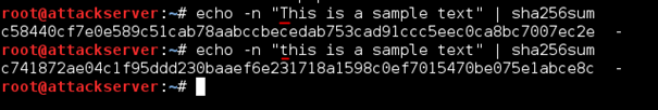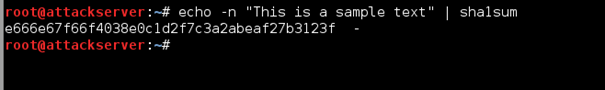 You can try to hash the same phrases using SHA1 algorithm by running the command: echo -n "This is a sample text" | sha1sum