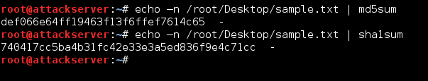 Md5sum and sha1sum can be used to verify file integrity, so to have the md5 and sha1 hash values of the previously sample.txt file we can execute the commands: