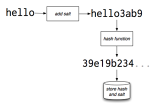 Due to its "predictive" nature and to avoid dictionary attacks against hashed passwords or passphrases by using pre-calculated hashes for every value, a salt is random data that is used as an additional input to a one-way function that "hashes" a password or passphrase. In a typical circumstance, a password is concatenated with a salt value before hashing them. The salt in the schemas below is 3ab9