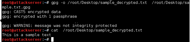 root@attackserver:~# gpg -c /root/Desktop/sample.txt