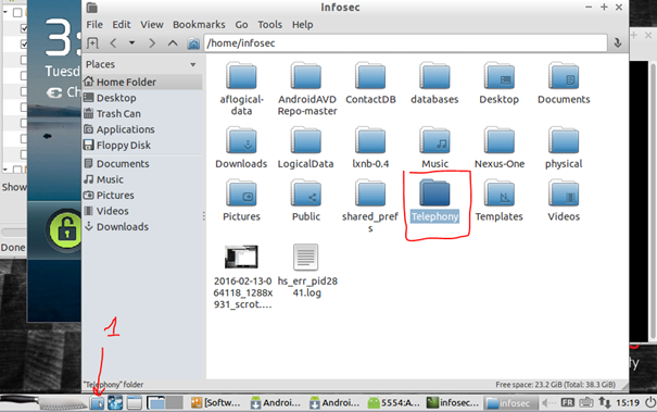To browse to this directory click on the icon of File Manager PCManFM then double click on Telephony folder: