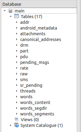 Moreover, by exploring databases folder, we can see mmssms.db which contains everything related to the SMS/MMS as suggested by their tables name You can open it by right-clicking on the database and selecting "Sqliteman":
