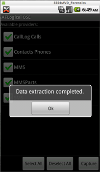 In addition to ADB, Santoku comes with AFLogical which provides a basic framework for extracting data from Android devices using Content Providers and then saves the data to the SD Card of the device including: