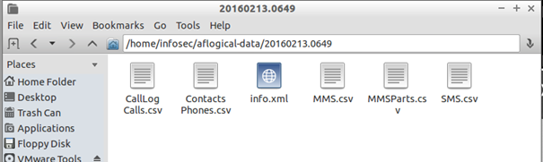 This will pull the data from SDCard to the location "~/aflogical-data". Santoku will automatically pull all the data recovered from the emulator to that location: