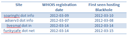 The Blackhole hosting sites move on rapidly changing domains quickly and freshly hosted domains are used to host the kit. A few of the domains hosting the Blackhole kit are: