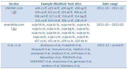 We also have cases of abuse for free domain registration services by Blackhole. Some examples here: