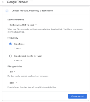 As we can notice, we are exporting once in zip format. Click Create export after choosing appropriate options as shown in the preceding figure.