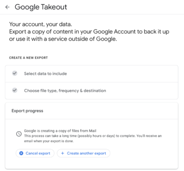 Depending on the size of the emails, it may take a few hours to days to export the data. Once done, we will receive an email with the download link. We can download the file and use it for further analysis.