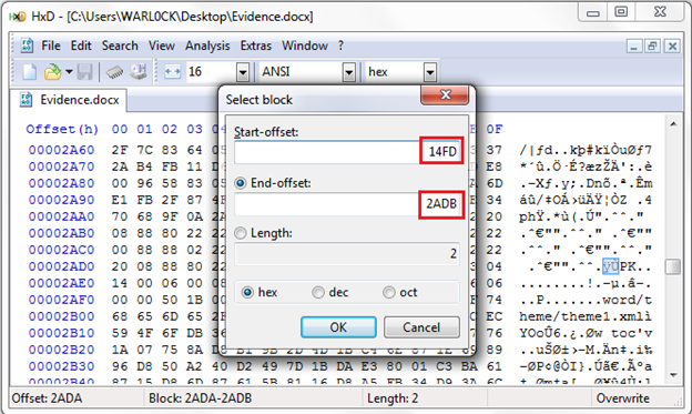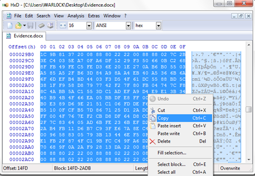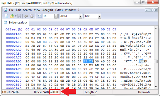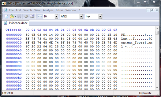 First open Hex editor and open this word file with hex editor: HxD > File > Open > your word file.