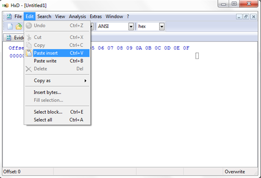 Now start a new file in hex editor by clicking File > New or (Ctrl + N) and paste the contents to new file.