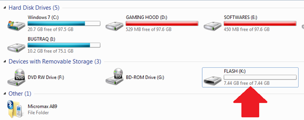 After that, it shows the drive file system and name; my drive name is FLASH and file system is FAT32.