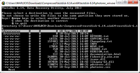 Now select the location where you want to save the recovered files. After choosing the directory location, press "C."