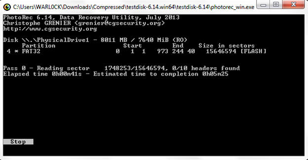Now I am going to use a file carving tool, PhotoRec, for recovering files from a flash drive.
